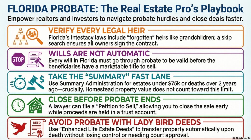 The investor or agent who understands Florida probate basics usually wins the deal and keeps it alive through closing.